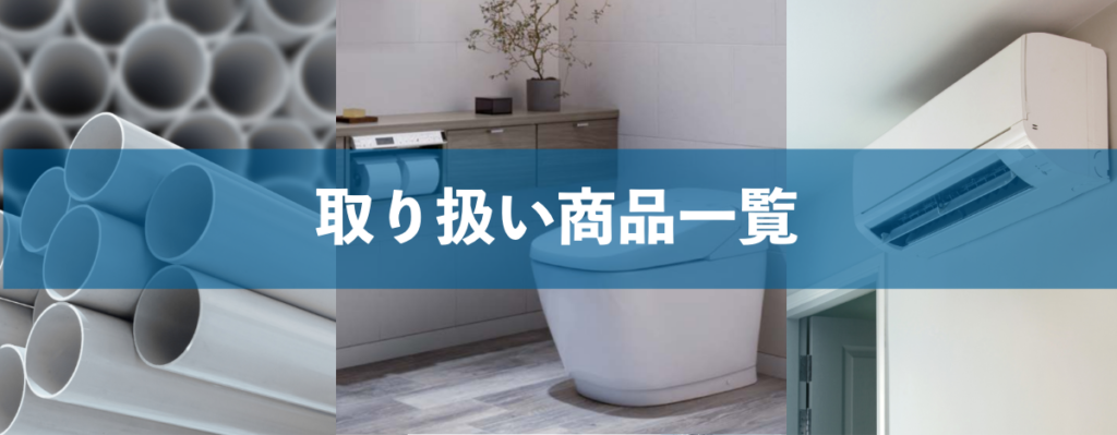国内有名メーカーをはじめ50社を超える優良メーカーの住宅設備機器・空調機器・管工機材を取り扱っております。